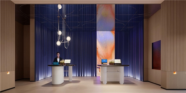 多功能大堂:全新大堂将更多活力多彩的年轻态元素注入其中,打造欢心悦己的一方天地。“欢迎区”创新使用岛台式智慧前台;“欢享区”满足商务私享与休闲欢聚多场景切换;创新模块“Hi Corner”围绕欢朋体验与欢小朋IP进行品牌周边打造。