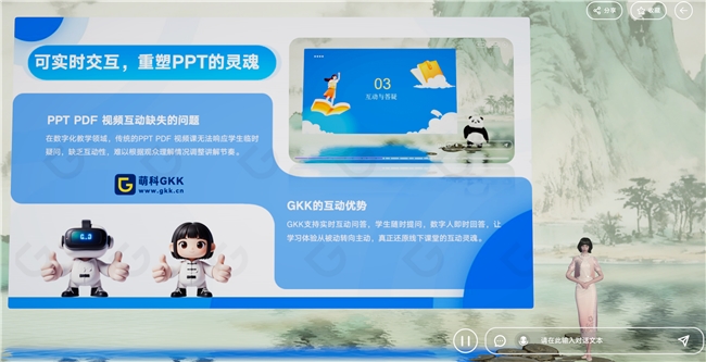 GKK 引入的“可打断式讲解”机制,允许学习者在任意节点提出问题,并获得即时反馈。如果问题超出原始课件范围,教师或内容管理者可以在后台补充相关知识,从而扩展系统的应答能力。这一机制不仅适用于学校教学,也适用于企业培训、产品说明、内部知识传递等场景,使原本封闭的内容呈现方式具备持续演进的可能性。