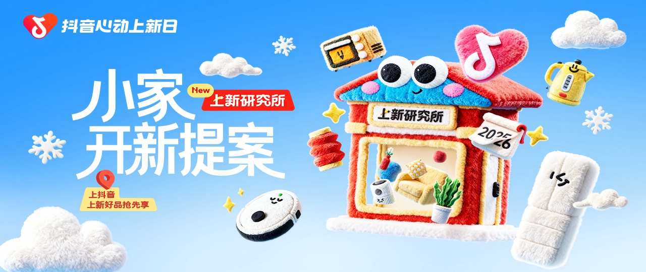 然而,此次上新研究所的新年特辑「小家开新提案」改写了这一叙事逻辑。作为抖音生活服务精细化运营的平台级营销IP,上新研究所以品类上新营销解决方案为核心,聚焦时令消费趋势,通过资源整合与标准化玩法,系统性解决品牌新品曝光难、转化断层等痛点。「小家开新提案」旨在为大家提供一种更轻量化、更易启动的焕新思路:家的更新不必始于宏大计划,而可以源于一个具体的场景需求。当焕新愿望被解构为对一处角落的关切、对一件好物的期待,改变的路径便从一项艰巨工程,转变为对生活的掌控感与新鲜感。