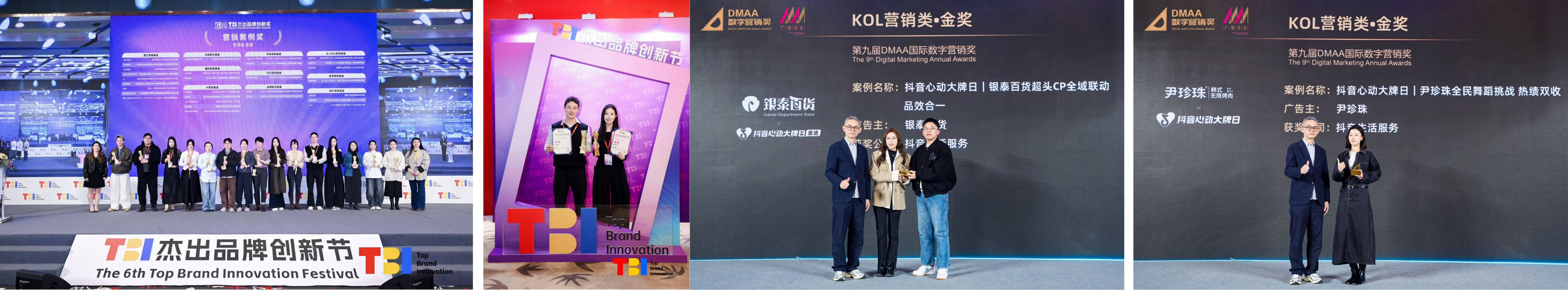 DMAA作为大中华区极具影响力、并被全球营销智库WARC收录的权威奖项,其评审核心在于数字营销对品牌“价值增长”的实际推动。TBI则深度聚焦数字时代品牌创新与全链路增长,评委团由顶尖品牌操盘手与平台高层构成,评选极具专业与权威性。「抖音心动大牌日」与「抖音心动上新日」自成立以来首次营销奖项摘星,凭借品效合一的底层逻辑与场景创新的破圈打法,在上千个参选案例中脱颖而出。