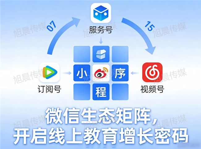 北京旭晨传媒深入剖析微信生态,精心构建 “服务号 + 订阅号 + 视频号 + 小程序” 矩阵,为教培机构重塑高效获客逻辑。