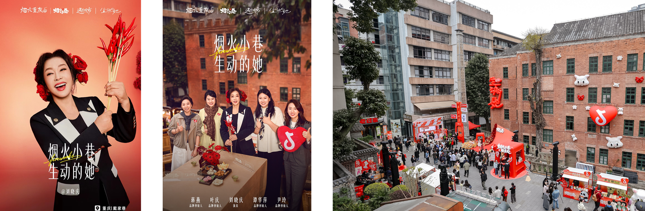 3月8日,项目在重庆戴家巷“烟火小巷”举办“38热辣派对”。重庆籍演员刘晓庆惊喜现身,与川渝女老板、烟火主理人齐聚一堂,将女性故事与城市烟火深度融合。现场特设“小红凳秀场”互动打卡点,市民游客沉浸式参与互动、领取限定周边。线下活动与线上话题形成联动,让「生动的她」从屏幕走进烟火人间,实现从共鸣到共情的最终闭环。