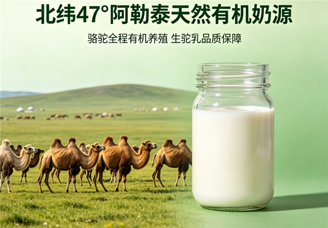 奶源背书:奶源采自北纬47°阿勒泰优质牧场,为天然有机奶源,骆驼全程有机养殖,确保生驼乳品质。